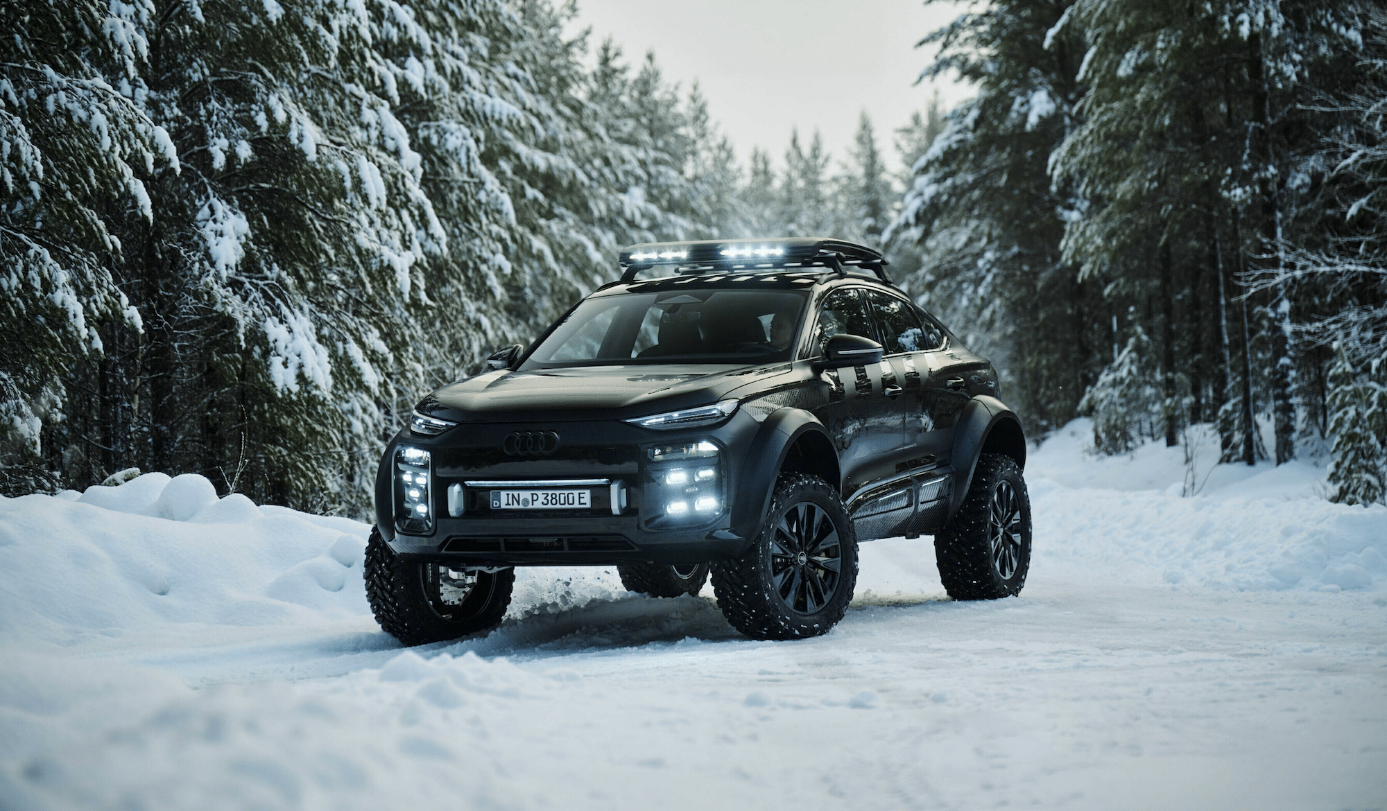 Kromě impozantních čísel přináší nové nápravy významné vylepšení jízdních schopností v terénu. Podvozek se zvýšil o 16 cm, rozchod kol se zvětšil o 25 cm, což vozu dodává robustní a sebevědomý vzhled. Všechny tyto úpravy umožňují konceptu překonávat stoupání až do 45 stupňů, tvrdí Audi.