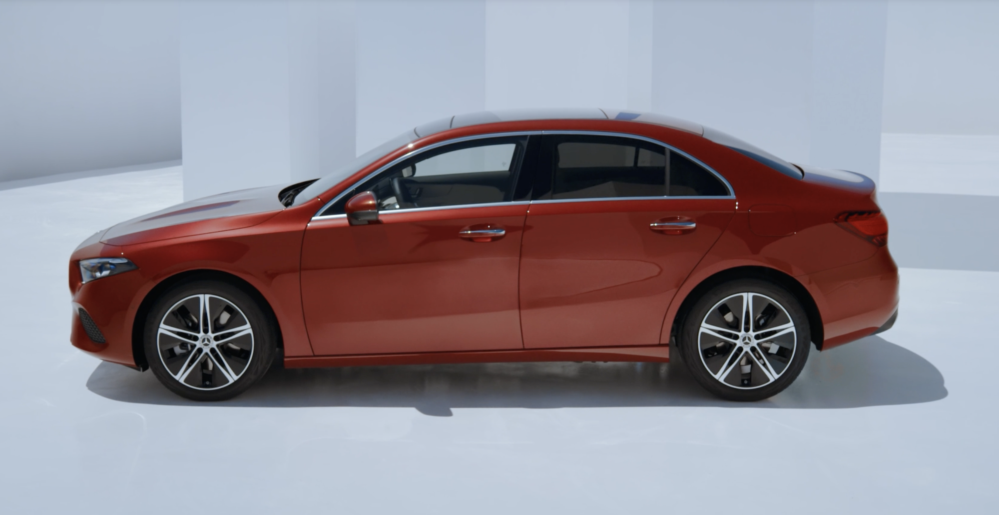 Exteriér Třídy A je charakteristický čistými liniemi a minimalistickým designem, který zdůrazňuje dynamiku vozu. Nápadné jsou i velkolepé 19palcové disky, které dodávají sedanu jemný sportovní šmrnc.